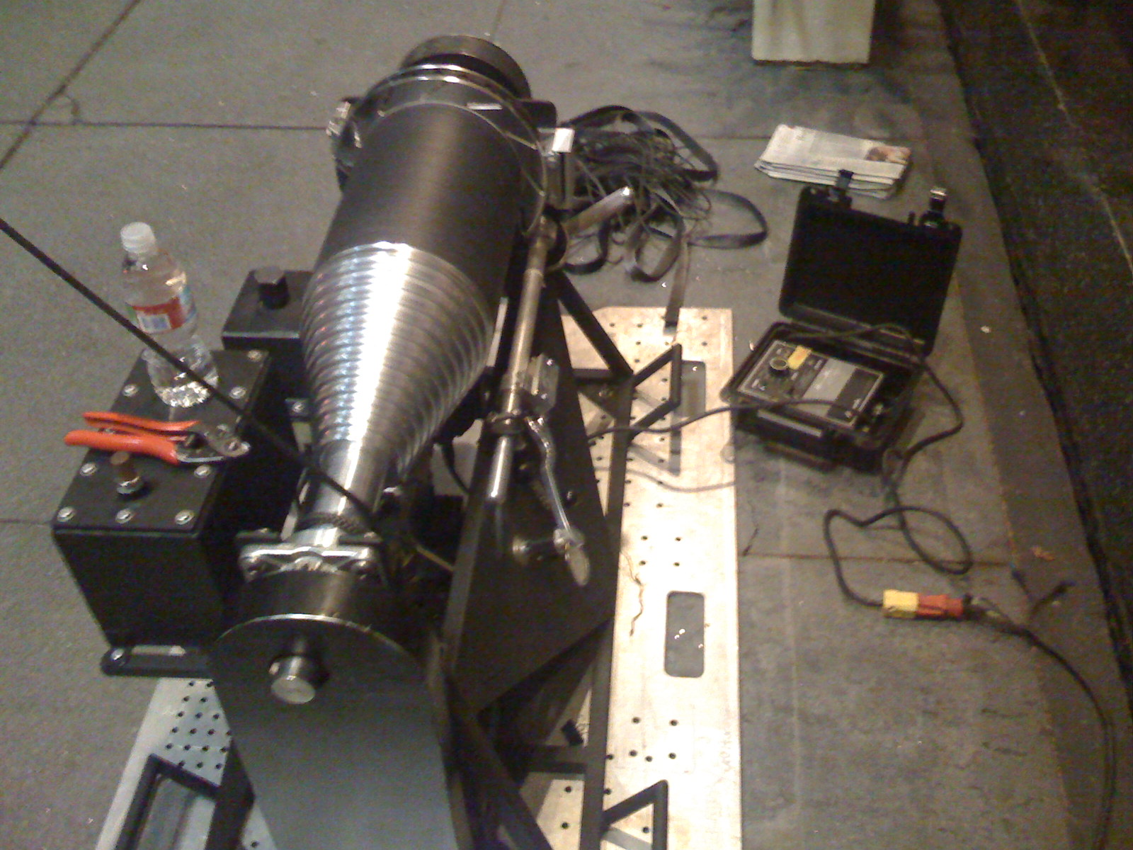 April, 2009 Wow, already April... where does the time go... I have been keeping busy with Terminator at Universal. Covering the first half of the week, so it has been 3-5 days of work each week. Spring Break weeks are the next two, so we are back up to 40 hours a week for two weeks, then it will slow down again until summer. I worked on CSI NY as a stunt double. I did what they call a decelerator. I was basically tied to a rope that was then pulled up roughly 160 fet in the air, and then when they call action the operator of the machine releases the break and I fell down to about 5 feet off the ground, where I was brought to a stop. I know it sounds crazy. It was a lot of fun. The sequence will be in the episode titled 'The Past, Present, and Murder' which aired on April 15. A guy is in an office and gets caught and a fight ensues, he is then somehow thrown out the window. I am the double from the outside all the way down to the ground where he lands on a grate.... Enjoy. I cant wait to see how they edit it together with their three camera angles but here is a small video clip from my little camera so you can see what we did. Press Play button under image. If you are not finding a play button in lower left of fall video above try this link, it should autostart. alternate play it is a quicktime .mov file This is the decender machine. The rope wraps around the spindle and pulls me up in the air and then it unwinds as I fall....it is currenlty in the fully out position.